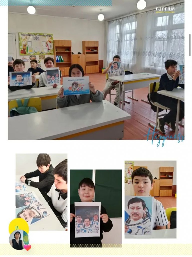 13 сәуір күні мектебімізде Ғарыш күніне арналған сынып сағаттары өтті. Оқушылар ғарышты игеру тарихымен танысып, адамзаттың алғашқы ғарышқа ұшуы туралы маңызды мәліметтер алды. Сонымен қатар, ғарыш саласындағы жетістіктер жайлы кеңінен әңгіме қозғалды.